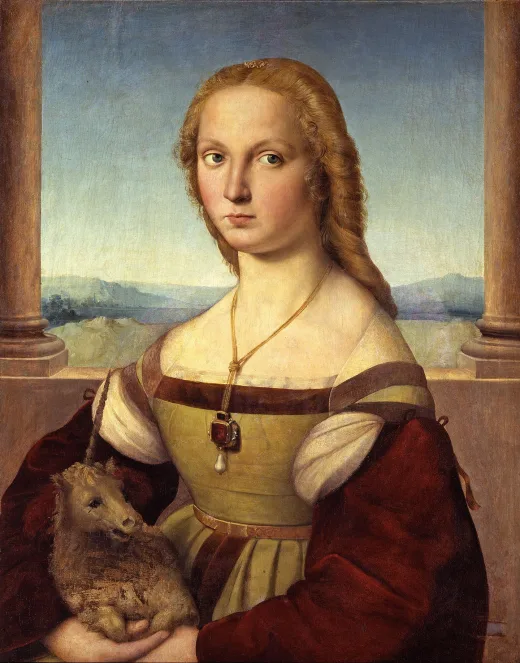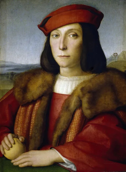 The image is ostensibly a portrait of Venetian Cardinal Pietro Bembo, Raphael's long-time friend. Raphael did make a black chalk drawing of Bembo during Bembo's visit to Urbino in 1506. The picture hung in Bembo's home for years before it disappeared.