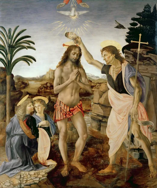 After the restoration, it was suggested that two of Leonardo's pupils, Francesco Melzi or Salaì, were among the probable painters, though others questioned this assumption; they suggest the author could have been a Spanish student of Leonardo, namely Fernando Yáñez de la Almedina or Hernando de los Llanos. The painting cannot be considered as a typical workshop copy due to its careful and thorough execution, as well as its use of materials such as lapis lazuli or red lacquer.