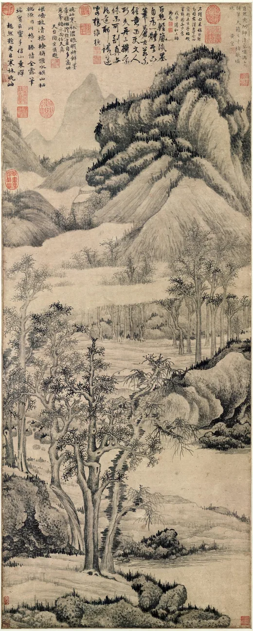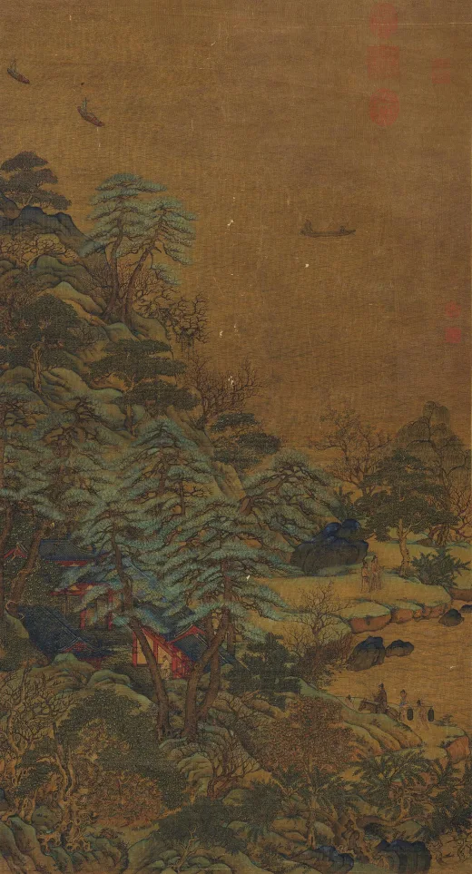 宋元名绘,元人画溪山积玉图,页,本幅24.1x23厘米,绢本,台北故宫博物院藏。